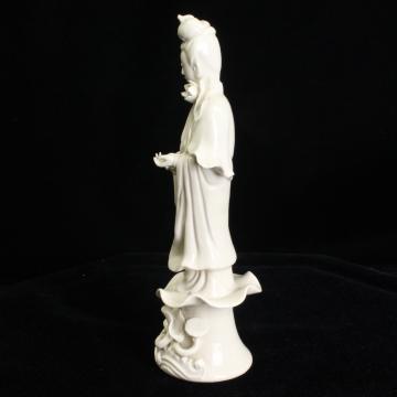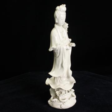 Description: Vintage Chinese porcelain Kwan-Yin statue in a white glaze