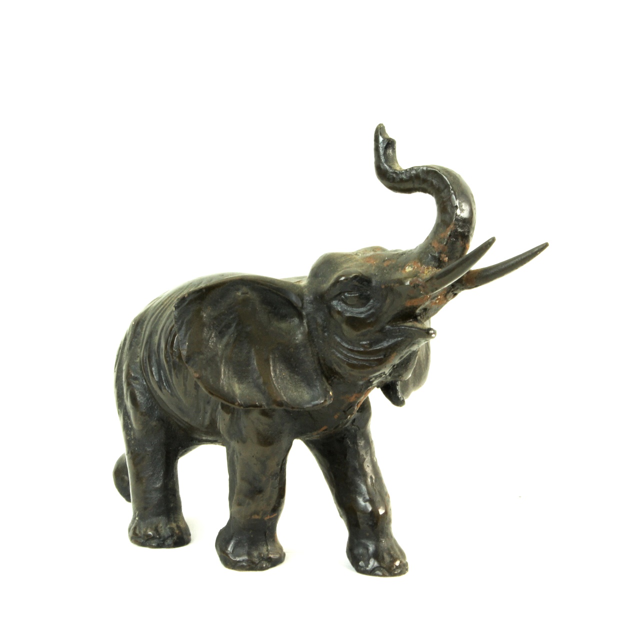 Description: Cast iron statue of an Asian elephant. Has a nice patina but the is some evidence of surface rust.