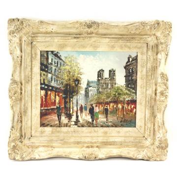 C. 1960s J. Bardot, Oil Painting, Paris Street Scene