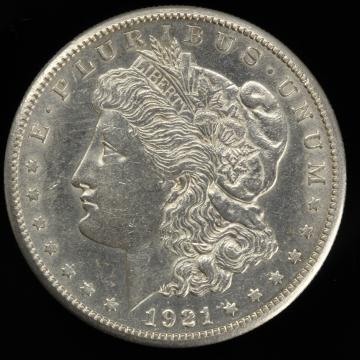 Description: 1921-S Morgan Silver Dollar with an "S" mint mark on the reverse. This silver dollar was produced at the San Francisco U.S. Mint. Includes plastic protective capsule.