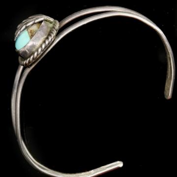 Description: Turquoise and Silver Bracelet weighs 11.39 grams. The large turquoise stone is 20.47mm long. Bracelet overall is 2 inches long