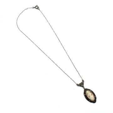 Sterling and Cameo Necklace, 16" length chain. marked Sterling