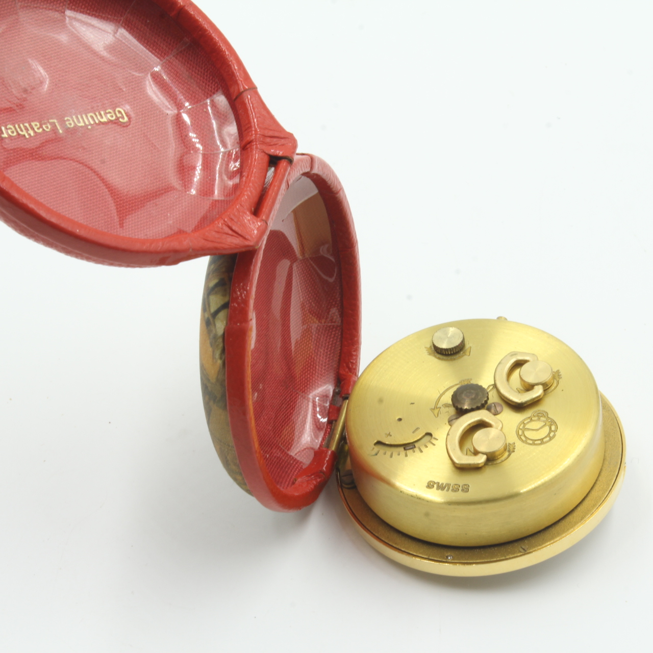 Vintage Travel Alarm Clock. Bucherer Swiss movement, leather case. Excellent condition.