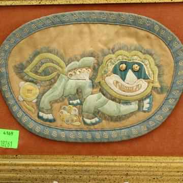 Description: Rank badge, Qing dynasty, embroidery in colored silk floss, wrapped gold thread, and flat gold on silk gauze.