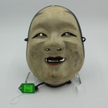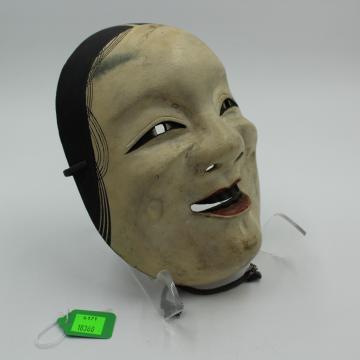 Description: This 19th Century Onna-kei Noh mask is carved from a single block of Japanese cypress ("hinoki") and painted with natural pigments. Noh masks were initially used in the mid to latter part of the Muromachi period (1392-1573).