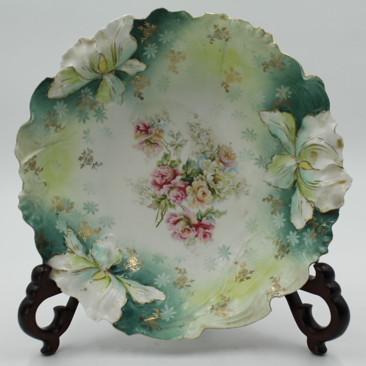 19th Century handpainted porcelain decorative bowl. No marking on bottom but likely Bavarian.