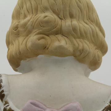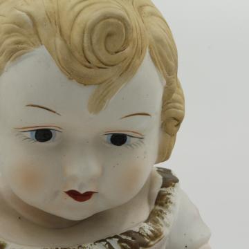 Description: 19th Century porcelain 'Piano Baby'. German original, handpainted baby girl figurine. Very nice bisque and modeling with a wonderful hair style. The dress, fingers and toes are well sculpted. Most likely Gebruder Heubach but is unmarked and un-numbered. Piano babies were created to decorate pianos. Mostly popular in the late 1880s to 1890s, they were still made into the early 1900s.