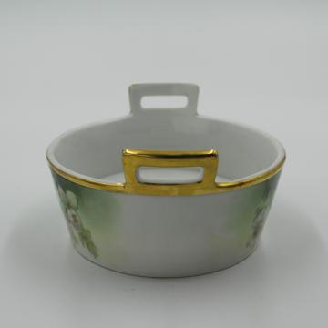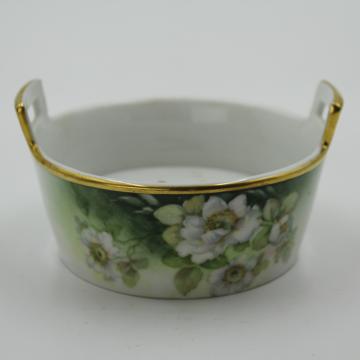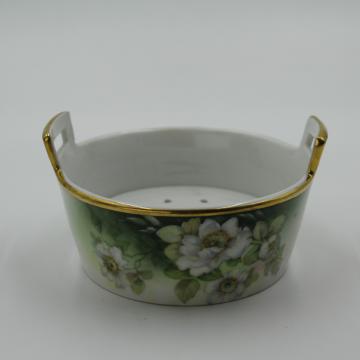 19th Century handpainted porcelain decorative butter or soap dish includes insert drainer. Bavarian. "H&C Selb Bavaria" marking on bottom.