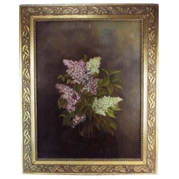 Description: 19th C. Oil on Canvas, Purple Lilacs, Untitled, by Unknown