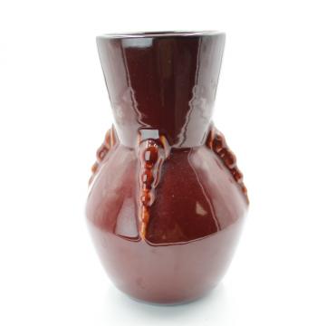 Description: Rare and Beautiful high-gloss red glazed Roseville Topeo gourde vase #658. The mid-period line known as Topeo was introduced by Roseville in 1934. The high-gloss red is considered to be the lost Mowa line, separate from other variations of Topeo. Foil Roseville sticker on bottom.