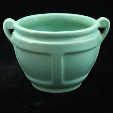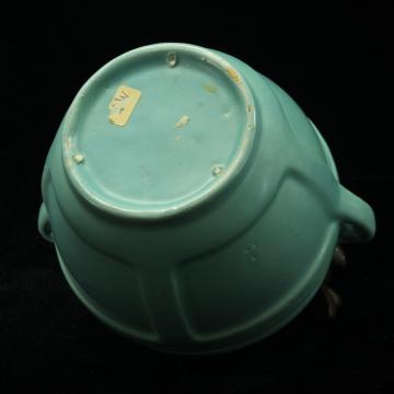 Description: Beautiful solid color Roseville Jardiniere #548-4 in matte turquoise blue glaze. The bottom has no markings. The Matt Color line started about 1920 and was a mixture of earlier lines more simplistic styles. Several of the styles in the Matt Color line were from the early period Matt Green line. This item has no paper or foil label affixed.