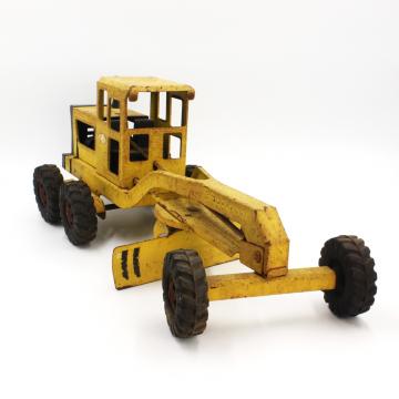 Description: Vintage 1970 two-tone pressed steel Mighty Tonka Toy road grader with injection molded plastic interior.