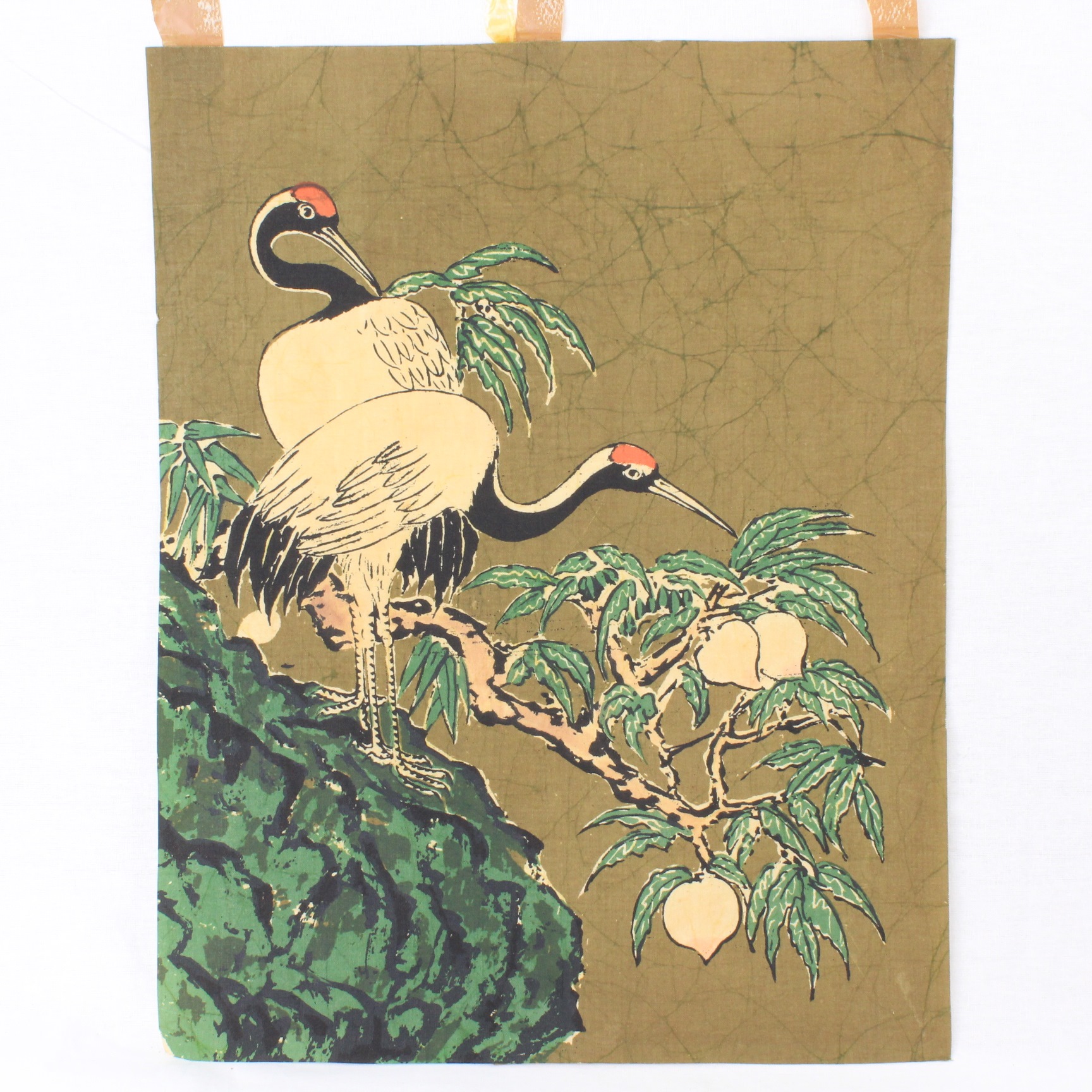 Description: Vintage Chinese watercolor painting on a hand laid rice paper. Two Cranes On A Fruit Tree.